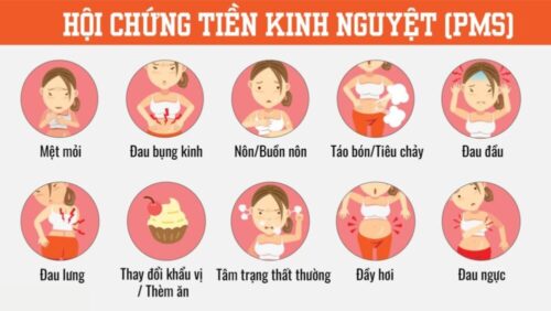 • Trạng thái bứt rứt khó chịu (PMS): Đây là một nhóm các triệu chứng về mặt cơ thể và tâm lý xuất hiện trước khi có kinh nguyệt. Các triệu chứng này có thể gây ảnh hưởng đến hoạt động hàng ngày của phụ nữ. Một số triệu chứng phổ biến của PMS là đau đầu nhẹ, đầy hơi, đau bụng, nổi mụn trứng cá, căng tức ngực, mệt mỏi…
