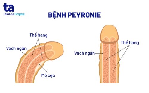 - Bệnh peyronie: Đây là tình trạng trên dương vật xuất hiện những mô sẹo khiến dương vật bị cong lên, cong xuống, cong sang trái hoặc sang phải khi cương cứng, tùy theo vị trí sẹo. Dương vật của người bệnh có thể cong một góc từ 15° độ đến hơn 90°.